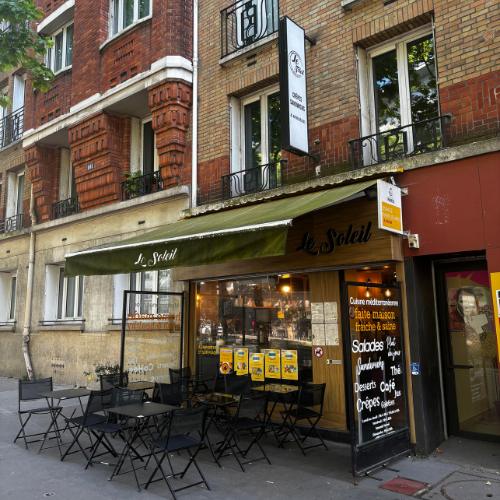 "Le Soleil" c'est un petit restaurant palestinien niché au 103 boulevard jourdan dans le 14ème arrondissement de Paris.